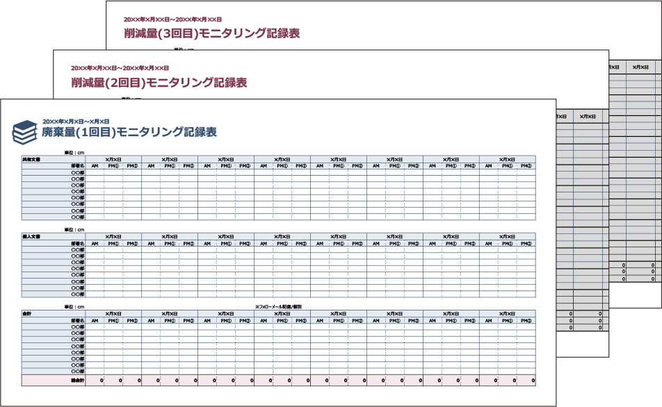豊島進捗管理シートで進捗状況を見える化しました。廃棄した文書の量をExcel(※)に記入していくのですが、他の部署はこんなに捨てているのに、自分のところはまだ捨てていないということが危機感につながったようです。