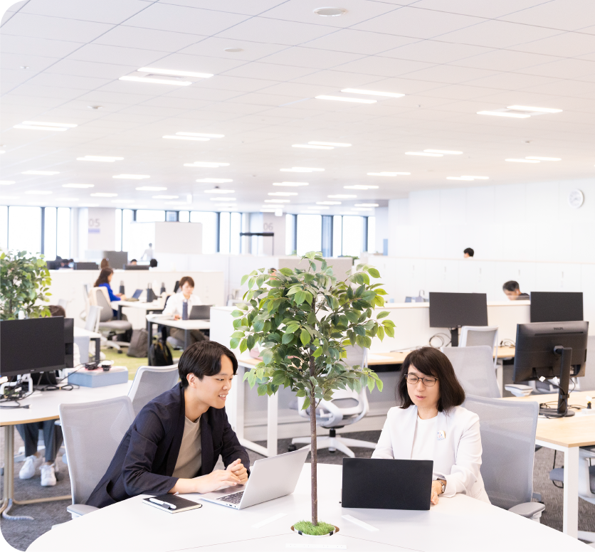豊島1フロアに全ての部署が入っているフリーアドレスのオフィスとなり、上司や他部署との交流がしやすくなっているようです。またファミレス席やテーブル席などが増え打ち合わせも気軽に行えるようになりました。